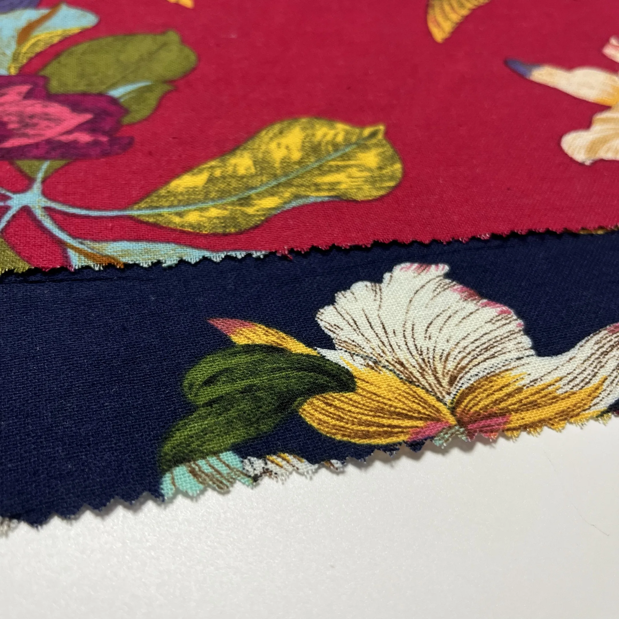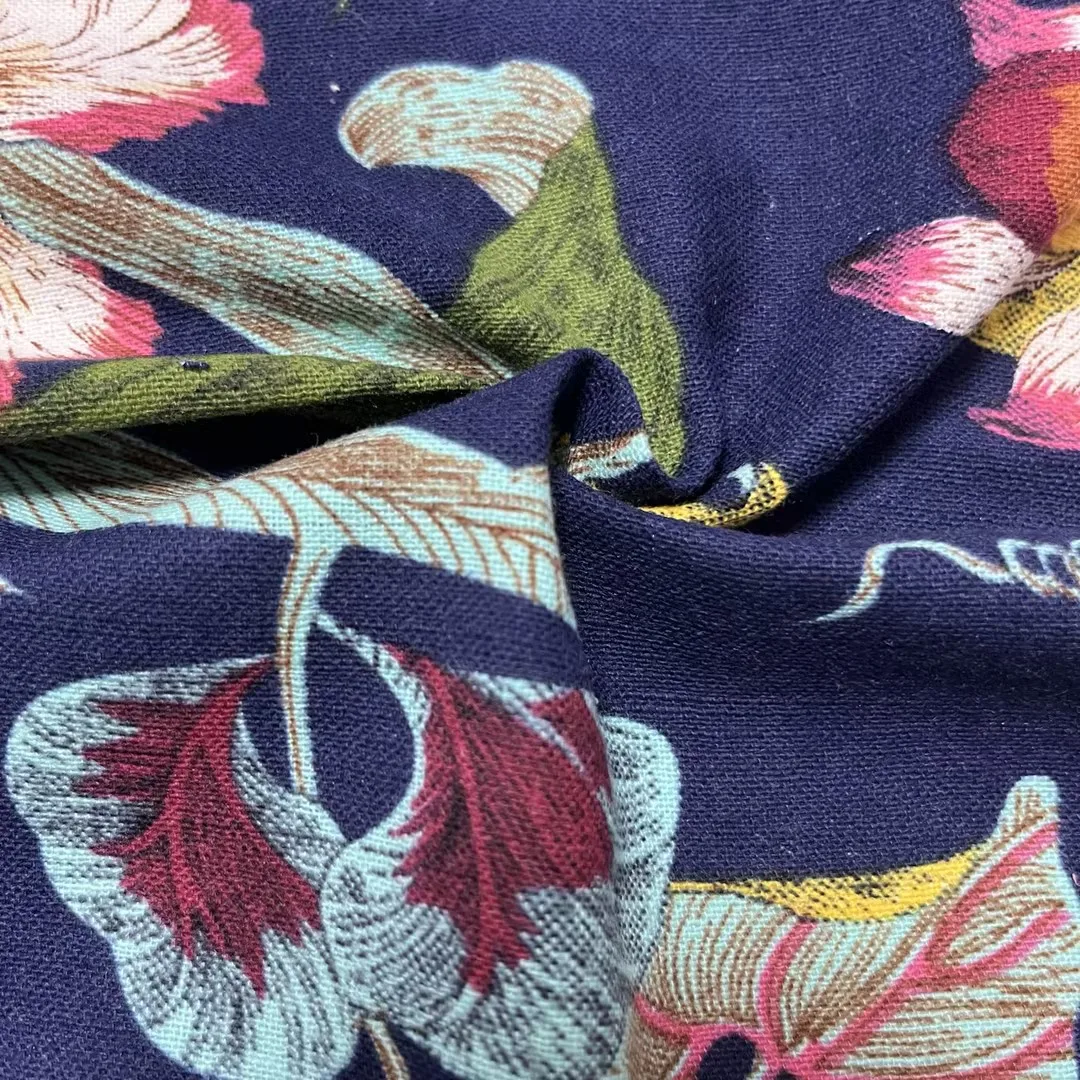 This exquisite digital printed fabric combines the best qualities of natural cotton and linen to create exceptional material for women's clothing. The 90% cotton and 10% linen blend offers perfect balance between softness and structure, providing superior comfort and durability. The digital printing technology ensures vibrant floral patterns with photographic detail and excellent color retention. This fabric features excellent breathability and moisture-wicking properties, keeping wearers cool and comfortable in warm weather. The medium-weight construction ensures beautiful drape and ease of movement.