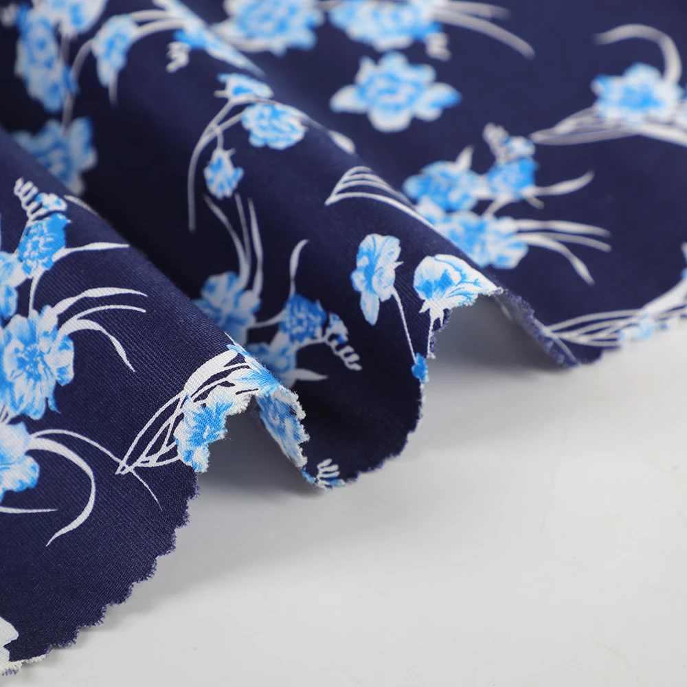 This floral printed fabric showcases sophisticated patterns through advanced printing technology, creating visually stunning designs that maintain their beauty through wear and care. The combination of natural cotton and flexible spandex ensures both comfort and perfect fit, making it an excellent choice for various women's clothing applications. The fabric's quality construction and reliable performance make it ideal for creating garments that combine fashion-forward designs with everyday practicality.