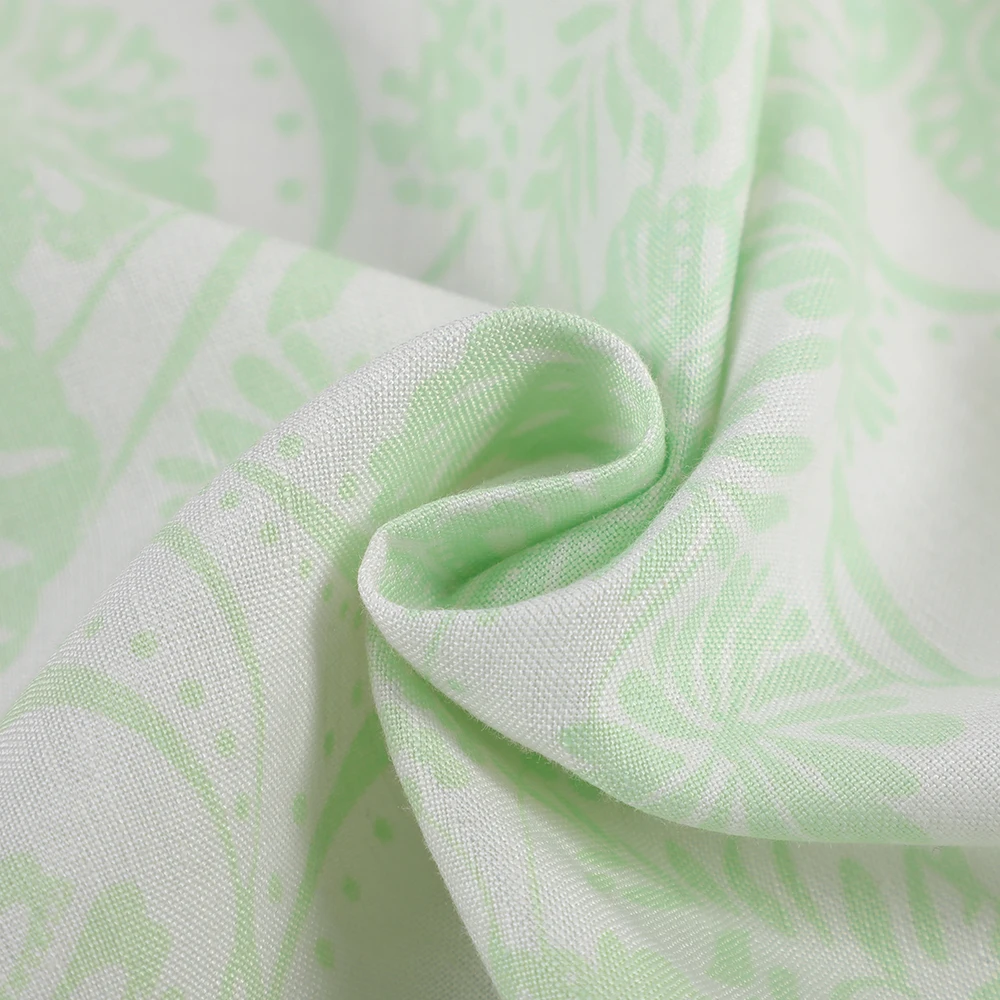 The fabric's surface characteristics make it particularly suitable for various printing techniques. The natural texture of linen creates depth and visual interest, allowing printed patterns to appear vibrant and dimensional. The material accepts dyes exceptionally well, resulting in rich colors that maintain their brilliance through multiple washes. The mediumweight quality ensures that prints remain sharp and well-defined without bleeding or fading.
