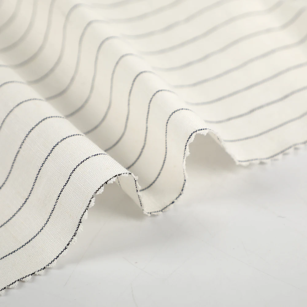 This fabric’s yarn-dyed stripes add a touch of timeless elegance, while its natural fiber composition ensures comfort and durability. Perfect for creating stylish, functional garments that appeal to modern consumers.