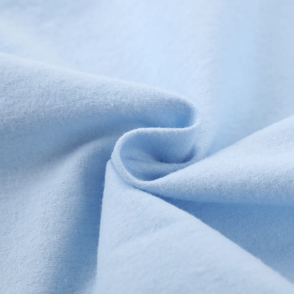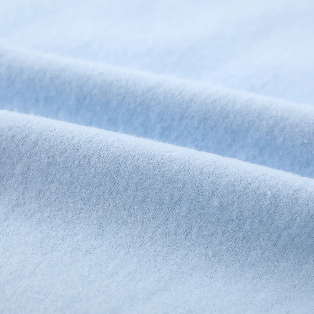 This exquisite organic cotton velvet fabric offers exceptional comfort and style for girls' clothing. The 100% organic cotton composition provides superior softness and safety for children's sensitive skin. The delicate baby blue color with pearlescent velvet finish creates a luxurious appearance perfect for special occasion wear. The fabric's natural breathability ensures comfort during extended wear, while the velvet texture adds dimension and elegance to garments. This medium-weight woven construction maintains perfect drape for dresses while offering durability for active wear. The organic certification guarantees environmental responsibility without compromising on the luxurious feel and appearance expected in premium children's fashion.